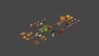 A collection of fruits and vegetables optimized for any game engine, designed to be mobile and web-friendly. This is achieved by combining multiple textures into an atlas and rescaling UV coordinates.